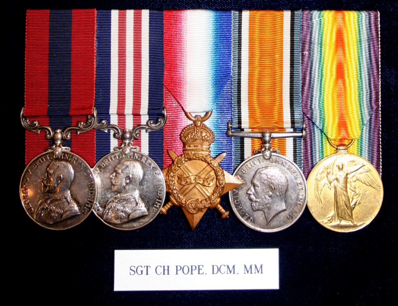 The Distinguished Conduct Medal (DCM) group of C.S.M. Charles Henry Pope, D.C.M., M.M. (Click image for full group) - Photo by Sgt A Majoor. (The RCR Museum Collection.)
